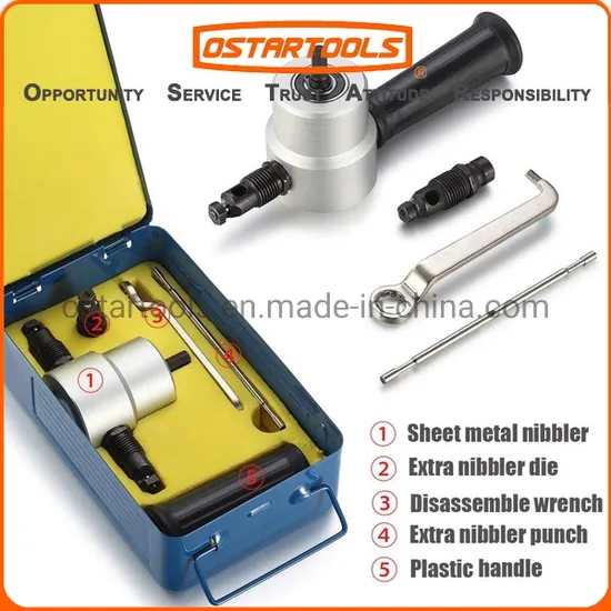 • Making cutting jobs easier, faster and safer with OSTARTOOLS double headed sheet metal nibbler cutter, easily fit into any standard drill. It can glide through material up to 2mm thick or 14 gauge and creates a precision, burr free edge.