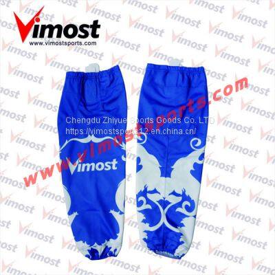 Apart from ice-hockey sock we also provide ice-hockey short, pant and jersey. Normally, we use #E as our main material, also known as the birds'eyes fabric, which is breathable and heavy-weight. Apparently, ice-hockey is a very intense sport, so the quality of the ice-hockey uniforms must be good enough, so that it is not damaged during the game, besides, #E material will make you feel comfortable and easy when playing.