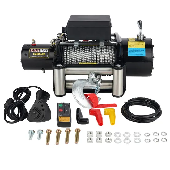 Pure copper motor and power cable, waterproof control box, steel gears 12V DC 16800 lbs rated line pull 7HP pure copper motor Waterproof control box 3m handheld wired remote Pull-and turn clutch handle 3-stage planetary gearing with 265:1 ratio 10.5mmx26m steel wire rope Heavy duty clevis winch hook Stainless steel 4-way roller fairlead 100% full load holding automatic mechanical brake One year warranty 16800LB WINCH SPECIFICATIONS