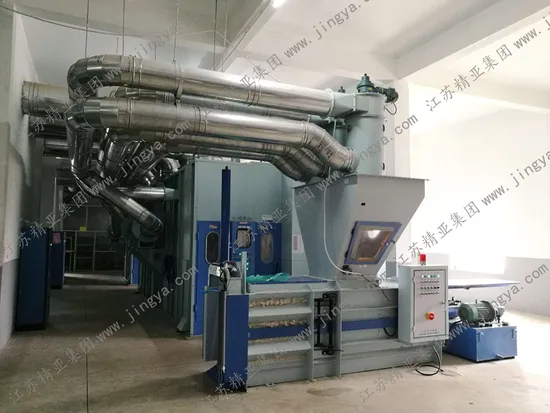 Working Principles: The fibrous dust extracted on the disc net is sucked off by fan through a big revolving nozzle, and then separated and compacted by the fiber-compactor. The air from the fan returns to interior of the first stage housing.