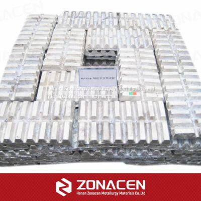 Hardeners Master Alloys: The recovery rates of some elements directly charged into molten metal in pure metal form are very low because of high melting point or low ignition or low wettability. The advantages of master alloys are lower melting point and higher recovery with uniform composition and low impurity content, which will reduce cost and improve efficiency for production.
