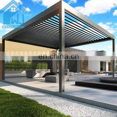 Product NameModern design bioclimatic motorized aluminium louvered pergola Materials Details1,Post: aluminum alloy 6063 T5 2,Blades : aluminum alloy 6005 T5 3,Beams: aluminum alloy 6063 T5 4,Gutter :100x100x2mm colors can be customizedControl wayMotorized/ManualFunctionWaterproof ,sunshade,windproof ,snowproof, house space extendingApplicationVilla,balcony ,garden ,backyard ,roof ,restaurant,decking ,swimming pool and so onWind Resistant180-220 KM/HSnow Loading60-100cmSizePopular standard size:3x3x2.5、4x3x2.5、5x3x2.5、6x3x2.5 or can be customizedOther related materialsSide screen/curtains, side shutter ,LED lights,heater ,fans,glass doors,outdoor furnitureInstallationWe will provide very detailed drawing and video for the installationOthers1.MOQ:1 set, we welcome small order 2.Production: we are factory , we can provide 10-15days fast production time 3.Warrenty:10 years 4.Color:White, Grey, Black, or customized colors availableFAQQ1. Is this aluminium louvered pergola easy to install?A: We have the assembly manual instruction specifically made according to your project site. It's a DIY product designed to be easily assembled and we can provide installation video.Q2. How long is your products' warranty?A: All our products have 10 years warranty.Q3:How to guarantee the quality of the products?A:We have our own QC team to control the products quality for all our clients'orders before loading.Q4. How can i get a price of needed aluminium louvered pergola?A: Please give the exactly size and quantity of your required aluminium louvered pergola. We can give you a detail quotation and free design solution based on your requirements.Q5.I am a small wholesaler, do you accept small order?A: It's no problem is you are a small wholesaler, we would like to grow up with you together and our MOQ is 1 set.Q6. Is my first time to export from China, what if i have no experience?A: Don t worry, we have very professional sale will guide for and we can provide one stop solution including deliver the door to your home address with customs.Q7. What kind of payment terms would you accept?A: We usually accept T/T, L/C, Western Union, etc. If you prefer other payments terms, please feel free to discuss with us.Q8. What if i meet the problem after installing and using this aluminium louvered pergola?A: As our principle is our business had been built on hoes & backed by customer service.we are verified supplier in Alibaba. com and our can provide 10 years warranty, so if you meet any problem for using thisaluminium louvered pergola,welcome to contact.