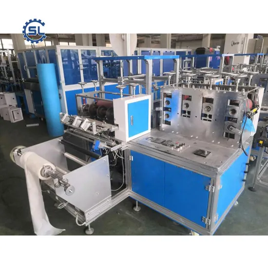 Disposable automatic shoe cover making machine, which can produce non-woven material shoe covers with good quality, low price and high output. It can completely replace manual shoe covers, save labor and reduce costs, and can be customized according to customer requirements.