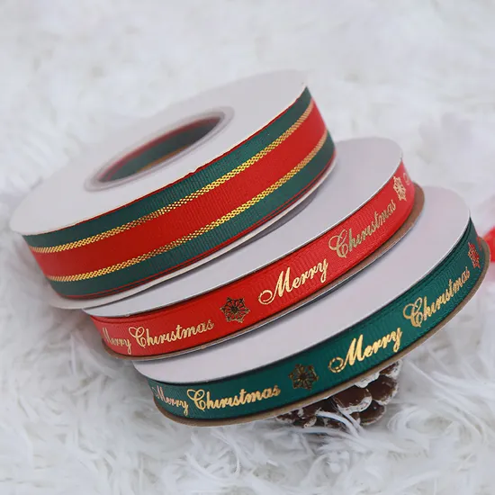 Christmas Ribbons Polyester Satin Ribbon Holiday Gift Wrapping Ribbon With Marry Christmas Pattern