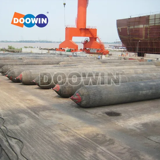 Ship launching airbags, known as roller bags or ship launching balloons, are made of heavy-duty synthetic-tire-cord layers with inner and out rubber layers in a long cylindrical balloon shape. Ship launching airbags can be used for ship launching, ship landing work.