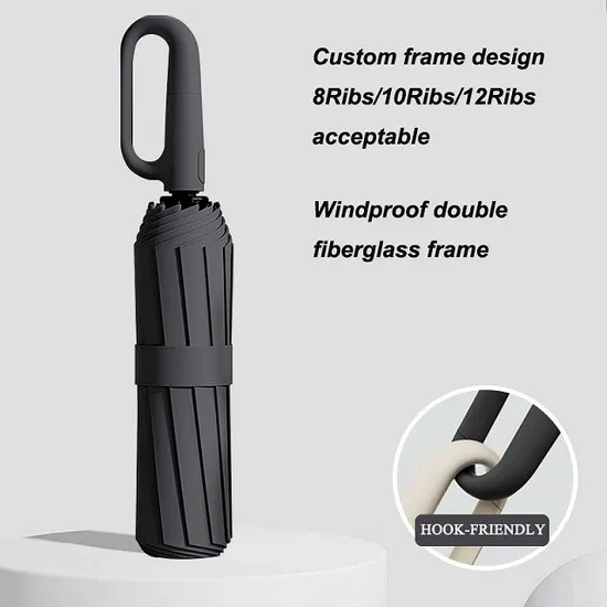 Product Umbrella Pattern Three-folding Umbrella Open Diameter 105cm Age Group Adults Panel Material Pongee Material Other Model Number HR-3355M Size 23"x10K, open diameter:105cm Fabirc 190T pongee ,solid color or digital print acceptable Frame Black metal frame with double fiberglass ribs Shaft 3 section black metal Handle PU coated plastic handle Function auto open auto close MOQ 500pcsLogo Cutsomized Color Cutsomized About us