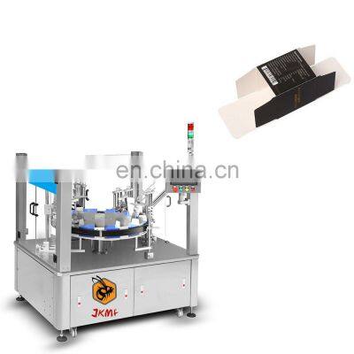 JKMF Automatic Cartoning Machinery Vertical Cartoning Machine 125 carton/min Condom Bag Sachet Box Packing MachineryProducts DescriptionJKMF Automatic Box Cartoning Machine is a hot sale product developed and manufactured by our company. It is applied to a variety of foods, toys, cosmetics, electronics and daily necessities. Machine InformationJKMF automatic cartoning machine can achieve full automatic products conveying & feeding, flat carton feeding, carton opening, products pushing, carton folding, carton closing, finished carton package discharging.ModelVertical Carton Packing MachineProduction speed1200-3000 pcs/hourPaper box largest size200 x 80 x 80mmPaper box smallest size30≤H≤100mmPaper quality of carton250-350g/m³Motor power1/4HP 15:1Machine noise≤80dBVoltage0.5-0.8 MpaAir consumption150L/minNet weight300 KGMachine size(L*W*H)1100*1500*1900mmLarge capacity storage box rackWith the long boxes' feeding shelf design, you can place up to 1000 pcs boxes, the machine will alarm and stop automatically whenthe boxes are going to running out.Sensor Identify the box The box storage shelf will stop to feed boxes once there is no box get detected on the conveyor, which will prevent from the box wasting.Automatic feeding device Pneumatic manipulator can fill materials accurately and at a high speed.Adjustable sealing device With the convenient adjustment design, you can easily to complete the adjustment for the different sizes boxes in 1 min.Why Choose UsJIKE BEE MACHINERY has a professional team to provide customers with various packaging solutions. Fully understanding the needs of customers,engineers design the most suitable solution. We have our own processing and assembly workshop and quality inspection and debugging process to ensure the quality of the machine. After acceptance by the customer, they are packed in international standard wooden cases and shipped.Our technical team has carefully filmed more than 100 installation and commissioning videos of various accessories and complete machines, providing video training guarantee services for the equipment permanently.We will package the machine's instruction manual and a USB flash drive with machine operation videos together with the machine.Ensure that you can use the machine as soon as you receive it. If you have something you don't understand, our after-sales team will also help you answer in time.We package and ship the machines in accordance with export requirements.1.Bottom fixed, avoiding shaking and damaging.2.Wrap whole machine in transparent film.3.Packed by fumigated wooden case, meeting export standard.Company ProfileFoshan Jike Bee Automation Equipment Co., Ltd. is a manufacturer of automatic packaging equipment.We are a production-oriented enterprises focused on product innovation, factory direct sales and perfect after-sales service in one.The automatic packaging equipment for granule, powder, liquid and sauce produced by the Jason company is at the advanced level of the industry,it can be customized production automatic material packaging line for all kinds of products .Mainly applicable to: food, hardware, drugs, daily chemicals, pesticides, fruits and vegetables, cosmetics, other industries.The company has its own patent and product technical certification, which can bring customers high quality equipment and worthy of customer trust.Customer PhotosOur customers have covered more than 80 countries around the world.And give us unanimous praise.CertificationsFAQQ1:Do you have manual or operation video for us to know more about the machine? Yes, not only manual or operation video, 3D drawing also available to make as per your design,also the video we can make of testing the material from our packaging machine if your packing goods easier for us to find from our local market. Q2:How can I trust you for the first time business ?Please note our above business license and certificate. And if you don't trust us, then we can use trade assurance service, guarantee your money, and guarantee your machine's on-time delivery and machine quality.Q3:Is engineer available to serve oversea?Yes, but the travel fee is paid by you. So actually to save your cost, we will send you a video of full details machine installation and assist you till the end.Q4:How can we make sure about the machine quality after we put the order?Before delivery, we will send you the pictures and videos for you to check the quality, and also you can arrange for quality checking by yourself or by your contacts in China.Q5:Will you provides the door to door service?Yes. Please offer us your final destination, we will check with our agent to see if it available, and most of the area is ok for us to clearing and sending in your countries.