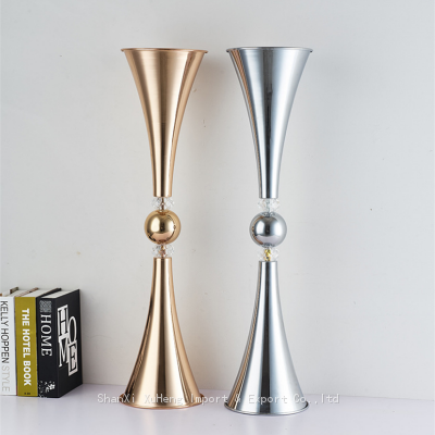 Metal Tall Silver Plated Tabletop Gold Trumpet Vase Flower Stand For Wedding Centerpieces
