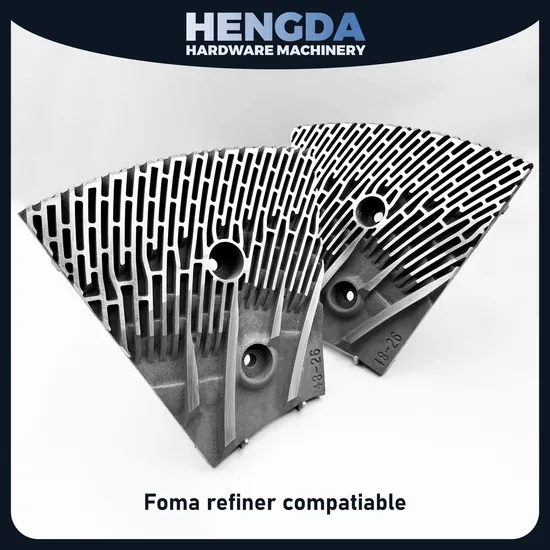 All refiner plates foundry with high-chromium alloy: Enhanced Durability and Wear Resistance: High-chromium alloy is renowned for its exceptional hardness and resistance to wear. This ensures that refiner plates maintain their sharpness and structural integrity over extended periods, even under harsh operating conditions.