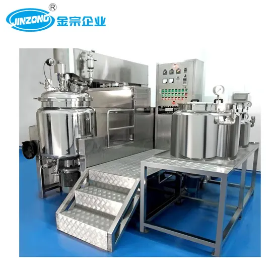 Our JRK vacuum homogenizer and emulsifier combines the newest-developed Germany technology and world-advanced unique function, its main components are imported originally from Germany. With new-structure, superior function, it is with fixed high-efficiency homogeneous emulsifier at the bottom-,The complete-obscuration vacuum status with inner recycle system, All these make it very suitable for all kinds the production of cream and skin milk , and Compared to the traditional variety of emulsification equipment ,it has greatly improved the production efficiency and goods quality.