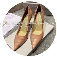 High Heels Women's Leather 2022 New Shallow Mouth Pointed Toe Stiletto Crocodile Pattern European Goods Temperament Banquet Single Shoes