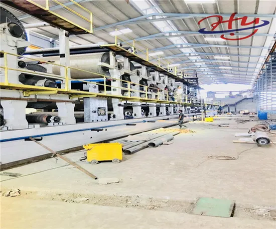 3.Main Equipments Paper Machine Wire Section At the wet end of the paper machine sits the headbox, which distributes a uniform jet of watery stock. The liquid falls onto the wire or forming fabric. Beneath the wire, foils (short for hydrofoils) remove water and improve fibre uniformity, ensuring that the fibres weave together in a tight mat. The wire passes over suction boxes that vacuum out the water, leaving a soft mat of pulp that forms the paper sheet, also known as the paper web. By now the wire has travelled 30-40 meters. In a couple of seconds, the water content has dropped to 75-80%, and the web has lost its wet sheen. Paper Machine Press Section The next stage of water removal consists of passing the paper web through a series of nip rollers that squeeze the water out of the pulp mat. This pressure also compresses the fibres so they intertwine to form a dense, smooth sheet. At this stage, the water content has reduced to between 45 and 55%. Paper Machine Drying Section The paper web now travels through an enclosed space containing a number of steam-heated drying cylinders. They are warmed up to 130ºC using steam heat to ensure that the paper is now 80 to 85% dry. Wet sizing solution is now applied to the paper in order to add a thin layer of starch to the surface. Starch contributes to stiffness and the bonding of the fibres within the sheet of paper. After the sizing is applied, the paper passes through another set of heated drying cylinders. In all, the paper web may travel 400 meters through the dry end. In the process, it will lose roughly 93% of its water. Paper Machine Finishing To give the containerboard a smooth and glossy surface to optimise it for printing, the paper passes through a set of smooth rollers, which can be hard or soft, that press the paper, embossing a smooth face on the paper surface. Paper Machine Winding After completing its 500-metre journey, the paper exits from the paper machine and is automatically wound onto a jumbo reel, which can weigh 50 tonnes and be up to eleven metres wide. The jumbo reel is lifted by crane to a nearby winder, where the paper is unwound and cut into smaller rolls as required by the customer.