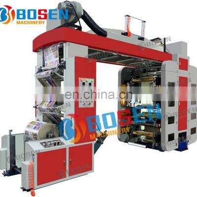 Products DescriptionBOSEN CI FLEXO PRINTING MACHINE 1、The machine introduction & absorption of European technology / process manufacturing, supporting / full functional, has the following features: 2、After mounting the plate and registration, no longer need registration, improve yield; 3、Replacing 1 set of Plate Roller only 20 Minute registration can be done by printing; 4、Maximum production machine speed up 200m/min, registration accuracy ±0.15mm. 5、The overlay accuracy does not change during lifting running speed up or down. 6、When machine stop, Tension can be maintained, the substrate is deviation shift; 7、With precision structural, easy operation, easy maintenance, only one person can operate.Product ParamentersModelBSHCI6-600BSHCI6-800BSHCI6-1000BSHCI6-1200Max.Material Width(mm)60080010001200Max.Printing width (mm)5607609601160Printing length191-1060mm, or customizedPrint colors6 colors (also we have 1,2,4,8 colors for your choise )Mechanical speed200m/min200m/min200m/minPrinting speed180m/min180m/min180m/minDiameter of materialΦ1000 mmTotal Power90kw95kw100kw105KWPlate Thickness 1.7mm, or customized (including two sides glue paper)Machine Weight9.5T10T10.5T11TOverall Dimensions8m(L)×2.6m(W)×4.0m(H)8m(L)×2.8m(W)×4.0m(H)8m(L)×3m(W)×4.0m(H)8m(L)×3.2m(W)×4.0m(H)Working Voltage380V 3-phase 50Hz, or customied such as 220V, 410V, 440VRecommend ProductsCompany ProfileExhibitionWhy Choose UsGood service 1. VideoWatch the machine running by our Bosen Machinery engineer professional guide in the video. the videos are including the machinetesting videos, training videos and maintain videos. Easy to operate and work.2.Manual bookManual book in English with electric drawing. How to protect the machine, How to run the machine, What problem you may meet.3.Engineer OverseasSend engineers to your factory, according to your request.4.On-the-spot TeachingYou could come to our factory to test and learn machines after you placing a order.5.Online ServiceYou could contact with us 24 hours. We will promise reply you as soon as possible in 1hour.FAQQ1: Are you a manufacturer or a factory? A1: Yes,we are the manufacturer which has over 15 years experience.Q2: Do you accept special design?A2: Yes,we accept design and manufacturer products according to client's special requirements.Q3: What about your package?A3: We use plywooden case normally, but if you have special requirement we can change and add special shipping mark.Q4: How long will you take before shipping?A4: It's depends on the products that you need,but we guarantee for shipping as fast as we could.Normally it will takes 10 daysafter we receive the payment.