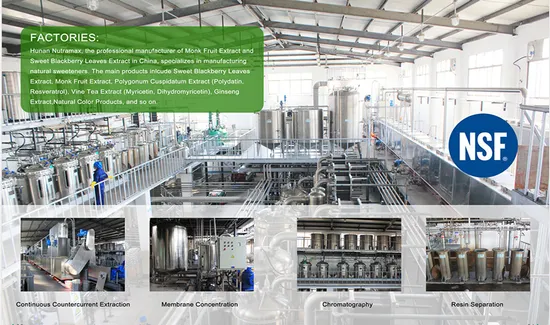 Company Profile NutraMax's Introduction:1. Hunan Nutramax Inc. Is one of the leading manufacturer of the. Herbal Extracts in China, specialized in herbal extract since 2003, and we enjoy the good reputation from our partners abroad and domestic2. Hunan Nutramax Inc. Hold 3 factories for professionally producing Botanical /Herbal Extracts3. The total annual production capacity of herb raw material is 9000mt, we can supply more than 800mt Botanical Extracts one year.4. Our factory have passed ISO14001, Kosher, cGMP.5. Our products are in great demand In USA, European, Japan etc., and being exported to over 40 countries throughout the world. Packaging & Shipping Packing & Storage: Delivery Time: Around 3-5 workdays after your payment. MOQ: 1kg packed in aluminum foil bag, double plastic-bag inside Package: In fiber-drums with two-plastic bags inside. Net Weight: 25kgs/Drum Gross Weight: 28kgs/Drum Drum Size & Volume: I. D. 42cm × H52cm, 0.08 m³ / Drum Storage: Stored in dry and cool place, keep away from strong light and heat. Shelf Life: Two years when properly stored. Shipping: DHL Express, and EMS for quantity less than 50KG, usually called as DDU service; Sea shipping for quantity over 500KG; And air shipping is available for over 50KG; For high value products, please select air shipping and DHL express for safe; Please confirm if you can make the clearance when goods reach your customs before placing an order, for buyers from Mexico, Turkey, Italy, Romania, Russia, and other remote places. Production Process