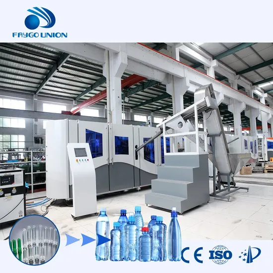 FG series are the most stable two-step automatic stretch blow moulding machine. FG4 serie has four cavities and the maximum capacity of the products is 2L.The capacity can be 6800-8000BPH, It can blow bottles in shapes:Carbonated, mineral, pesticide, cosmetics, wide-mouth, hot filling, and other packing containers, which is made of plastic of crystalline type, such as PET etc.