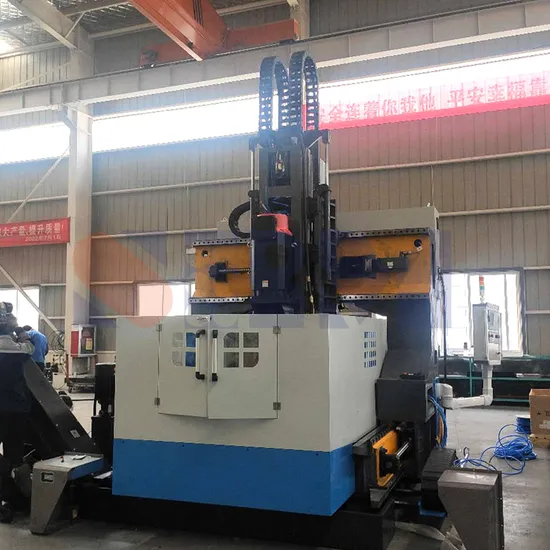 The PMD-series is a gantry moving CNC high-speed drilling and milling machine, mainly used for drilling, shaving, chamfering, grooves inside holes and milling of flanges, heat exchangers, tubeplates, rotary supports and other workpieces. It can be used for internal cold high-speed drilling with hard alloy drill bit or external cold drilling with high speed steel twist drill bit. Drilling depth of 10D (10x diameter) can be achieved with special crown drill bit. The machining process is NC and easy to operate. Adopting iron casting bed, it It can realize automatic, high precision and many kinds of mass production