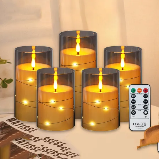 * Charming String Light Design: These Homemory flameless candles are creatively wound with fairy lights to emit a bright and beautiful light, the embedded string lights are perfect for use in decorative scenes such as home, wedding, Halloween, Thanksgiving, Christmas, etc.* Convenient Remote Options: Easily Turn ON/OFF, individually control the string light switch, and adjust the lighting mode and brightness. Set the 2H/4H/6H/8H timer then the remote candles will automatically work every day saving you time and battery energy.* Safe & Unbreakable: The acrylic shell is stronger and more lightweight than glass, so don't worry about the electric candles breaking when they drop. Also, no worry of melt, smoke, flame, and dripping wax, kids&pets-friendly.* Long Lasting: Each battery operated candle is powered by 2 AA batteries(not included), using high-quality batteries will last 300+ hours.