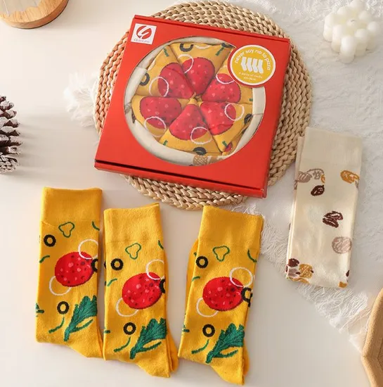 Web: wzshengli.en.made-in-china.comCute food pizza print decoration pure cotton socks personalized gift mid tube fun socks for children