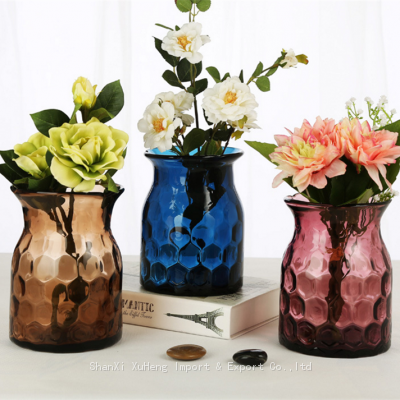 Factory Wholesale Solid Color Glass Flower Container Hammered Small Vase For Tabletop Decoration