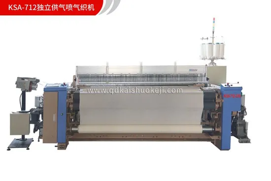This product is a kind of energy saving and simple independent air jet loom development of the new company, supply air pump is installed on the outer side of the frame, easy installation and maintenance and debugging, simple operation, weft insertion mode is controlled by the electromagnetic valve, the main, auxiliary combined nozzle and profiled reed; beating the four Linkage Beating-up, mechanical let-off, mechanical take-up, shedding mechanism adopts a crank or cam shedding, weaving in cheap fabric, energy saving can reach more than 50%. Less investment, quick effect, is the most ideal rapier loom to several existing loom, air-jet loom in the period of transformation models.