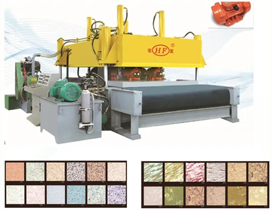 LX thickiness calibrating machine is designed for the process fo calibrate thickness before polishing artificial quartz stone. There are three size- 4 ends, 6 ends, 8 ends. It can process three width type quartz stone: 1m, 1.7m, 1.9m. Range of vertical stroke of the cutter is 60mm, the max thickness of precessable artificial quartz stone is 50mm. LX thickness calibrating machine serves an unique structure- main shaft and guide rail. All part self- lubrication, controlled and displayed by computer. Splash, water and fog proof state is well. Osciallation and transmission speed is adjustable.