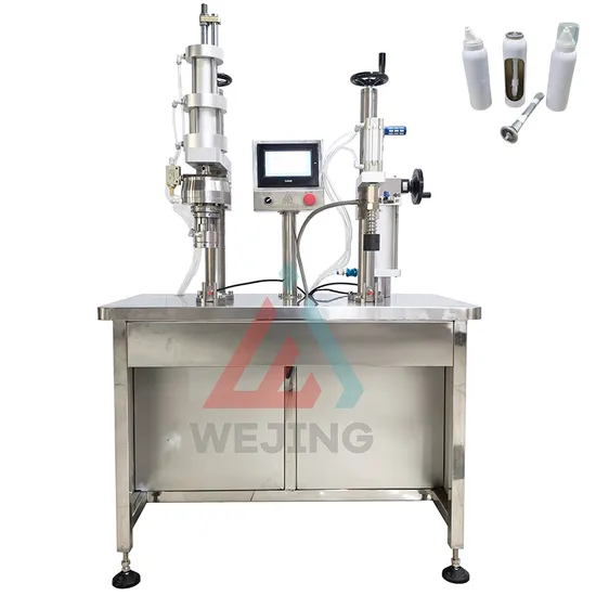 Semi automatic bag on valve aerosol filling machine is an efficient filling equipment for packaging products of aerosols. The machine has a beautiful appearance, programmable control by a microcomputer (PLC), and photoelectric sensing.