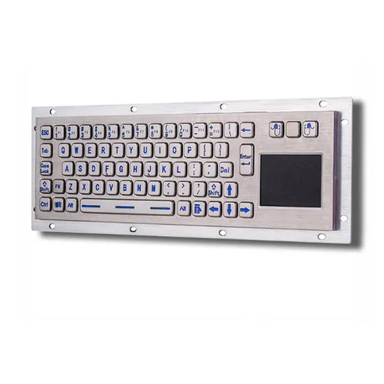Outstanding Features | 65 keys stainless steel panel mounting keyboard with trackball Support OS: Windows95/98/NT/ME/2000/2003/XP/Vista, Linux and Unix Customized layout available Lettering by etching and inking, or laser technologyCarbon-on-Gold key switch technology (silicon gel) Mechanical/ Optical trackball optional Waterproof and dustproof Very ruggedvandal proof design Can be cleaned with soapy water, disinfectant or other cleaning agents |