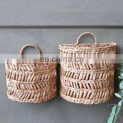 Hot Sale Water Hyacinth and Jute Antique Wicker Wall Hanging Baskets for Plants Accessories Flower Holder Supplier