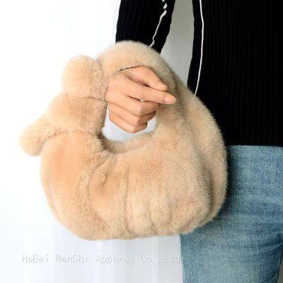 36Plush cloud cute handbag bag autumn and winter bag female hand bag all fluffy pleated handbag fashion underarm bag wholesale