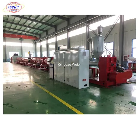 High capapcity HDPE PE pipe extruder extrusion line PE pipe extrusion line is developed by Weier based on European advanced technology and R&D experience of the plastic machinery for many years. Advanced design, reasonable structure, high reliability, high degree automation of the complete line.