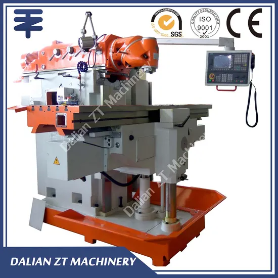 E It can mill any angle surface through front half-sphere by swiveling milling head