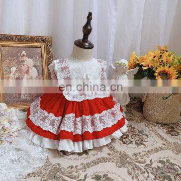 | 2020 Summer Spanish Lolita princess dress baby girl clothes lace stitching red dress for girl birthday party vestidos