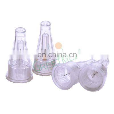 Medical disposable insulin pen needleProduct Descriptioninsulin pen needle specification:Needle SizeNeedle LengthPackage30G8mm100pcs/box31G8mm100pcs/box31G6mm100pcs/box31G5mm100pcs/box32G4mm100pcs/box33G4mm100pcs/boxPackaging & Shipping Company InformationOUR ADVANTAGESExperience· More than 15 years experience in medical instruments industry· Products sell to more than one hundred countries all over the world· An esteemed & reliable manufacturer in chinaServices· One-stop shopping of medical instruments products· Less than 45 days delivery· 24 hours online service· We can provide our technical documents for your product registrationProfessionalism· Having a great understanding of market trends· Systematic product knowledge training system· Leading development oriented manufacturer· Help customers build factorySafety· All products certified by CE/ISO13485· Professional QC team Trade Shows Certifications FAQ1.Can I get some samples?We are honored to send you our samples,but the express fee need to paid by your esteemed company2.How about the delivery time?1).For Samply order will be prepared within 5 days.2).For bulk order.normally,it needs 20-30 days,it's based on you QTY.3.Can you do custom-made?OEM,ODM welcomed.1).Silk print your logo on the product.2).Customized colorbox.3).Design and produce based on your idea and draft.4.How about the payment?1).Amount less than $1000.You can pay for the order by Paypal,western Union.2).Amount more than $1000.You can pay for the order by T/T,LC.We support Trade Assurance - A free service that protects your orders from payment to delivery,it can make your funds safer.5.How about the shipping?1).For sample order,it can sent by express company like UPS,Fedex,TNT ect.We have strong cooperation with them and if you have express collected account,you will no need to pay us.2).For bulk order,it would sent by sea.We have our cooperation forwarder and you also can use your OWN forwarder.6.How about your service?1).Any Inquiries will be replied within 24 hours.2).Professional manufacturer,quality issue,competitive price.3).All products will be strictly quality checked and well-packed before shipping.4).If you order FCL and the broken more than 2%,we will replace you at the next time.5).We can assist you to apply the relevant certificates