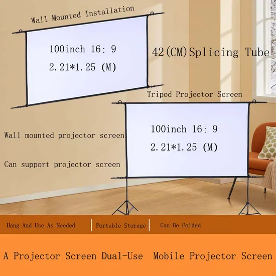 Product Description Thinyou 100inch 16:9 Projection curtain polyester portable Foldable Outdoor Splicing Double Tripod Projector Screen
