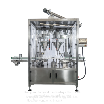 This machine is capable of accurately dispensing dry powder into round-shaped rigid container (401#-502# Metal -Plastic -Paper Can) at line speeds up to 50 bpm ,Two-stages filling integrated with inline check weigher and reject system .It provides precise weight control to save expensive product give-away .It is widely used in milk /Protein powder filling and seaming line featured with High speed,good accuracy and stable performance.