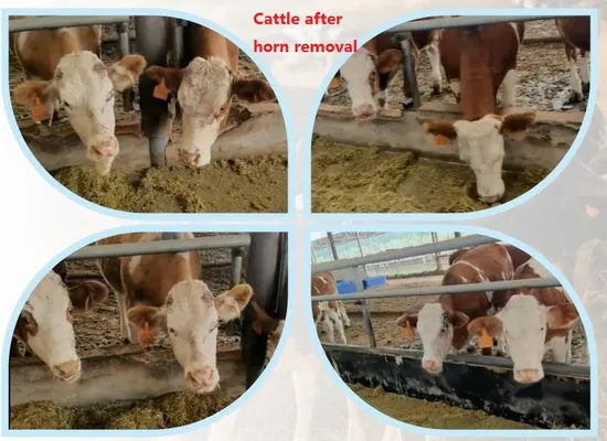 (2) Cattle with horns removed need less shed area and food intake space area, which is an important management measure for cattle farms raised in fences, which can increase the feeding density of cows and increase the economic benefits of farmers.