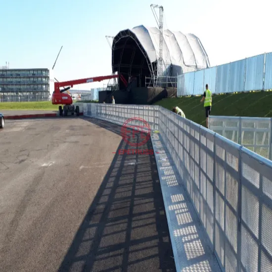Features Allow lights, smoke, and sound to pass through. Firm and stable construction. Perform well even on uneven ground. Reinforced structure inside frame tube and brace. Utmost in safety for crowds. Mesh walls provide greater visibility for security personnel and fans. Rounded top rail for audience easy and comfortable to hold the barrier. Smaller holes on vertical perforated plate to avoid hurting fingers. Units lock together without tools. Can be folded flat for compact storage. Easy to assemble and disassemble. Intelligent design enables handling without risk of trapped fingers.