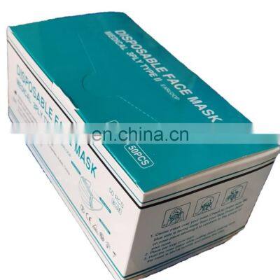 Product Description DescriptionDisposable Medical Surgical face maskMaterialPP Nonwoven + Filter+ PP Nonwoven, SS/SMS also is a good choiceBFE≥90% 95% or 99%Size17.5x9.5cm (or as requested)ColorBlue/White/Green /PinkPackaging50pcs/bag,2000pcs/ctn 50pcs/box,2000pcs/ctnCtn Meas50*37*27cm 7.2/6.3kg 52x38x30cm 9kg/7kgApplicationsMedical care, food service and safety protectionCertificationISO,CEOEM1.Material or other specifications can be according to customers' requirements.2.Customized Logo/brand printed.3.Customized packaging available.Contactlisa_huang @ Mask Specification1. 175 mm × 95 mm / 6.89in. × 3.72in.2. Nose clip is located on the upper edge ofthe mask, and the outside of the mask is darker in color.3. Nose clip: length >80 mm (3.15in.); width approximately 3 mm (0.12in.).4. Ear loop: 180 mm (7.09in.) in length and 3 mm (0.12in.) in diameter, composed of polyester/nylon spandex and other materials, welded on the inner layer not more than 10 mm (0.39in.) from the edge.5. Packaging specification: 50pcs/box; 2000pcs/carton Advantages1. Sample free.2. Strict standard and high quality with CE, ISO.3. Rich experience for many years.4. Good working environment and stable production capacity.5. OEM order is available. 6. Competitive price, Fast delivery and Excellent service.7. Accept Custom Order, available in different sizes ,thickness, colors. Company InformationXingrong Protective Products Co., Ltd, founded in 2003, is located in China's largest production base of non-woven products: Pengchang, Xiantao, China. Our factory is a professional enterprise integrating development, production, and sales. With consistent hard work and continued to forge ahead, Our company expand the 60,000 square meters, new plant on the basis of the 10,000 square meters old one . We successfully introduce the width of 3.2m SMS non-woven production lines, also, we have 5,000 square meters of standard purification production workshop .The total investment is 90 million .It further improved the quality control system. The main products are disposable face masks, shoe covers, caps, surgical gowns, patient gowns, and other disposable products for health protection, which are widely used in hospitals, electronics factories, food industry, beauty salons, decoration project, cleaning and daily life and other fields. Fully displaying the local resource advantages, we expand the market outside, intensify the management inside and ISO13485 quality management system runs well .Moreover, we have passed CE certification. Xingrong always pursue the modern management philosophy, THE BEST PRODUTS, THE SUPERIOR SERVICE, THE ADVANCED MANAGEMENT. The Xingrong family sincerely welcome the partnerships at home and abroad, joining hands in creating a brilliant future!