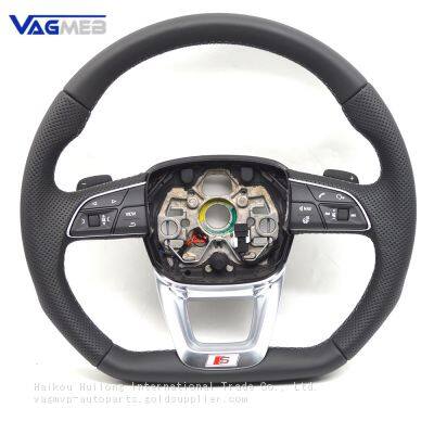 For Audi Q3 D-Shaped S/RS Logo Perforated Leather White Stitching Steering Wheel With Paddles Assembly