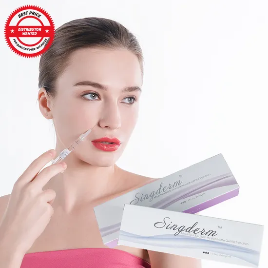 1). Effective a. good volume High viscoelasticity, not easy to shift deformation caused by external force. and strong support, keep good volume. b. Long duration The high concentration of 24mg / ml and crosslinked polymer network structure are not easy to be degraded, and can last more than 12 months. | 2). Safety c. Our Material is approved by American FDA and European EDQM. d. With the terminal sterilization, can ensure the sterility of 106 level ; Use BD hylokTM syringe, with smooth injection and good sealing. Multiple process ensures safety. e. Good biocompatibility Streptococcus fermentation, Non - animal origin , osmotic pressure and pH value close to human body, greatly reducing the probability of swelling. | 3). Soft and natural, relaxed injection experience f. Singderm uses single-phase cross-linking technology, is smooth and uniform, no particle foreign body feeling, soft texture. g. It contains 0.3% lidocaine, which can effectively reduce the pain caused by injection. |