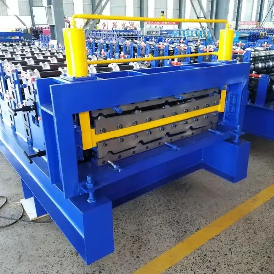 10. Technique parameters of the main roll forming machine (1). Forming stations: corrugated 13 / IBR 18; (2). Roller material: 45# steel with CNC machining and surface is being hard chrome; (3). Diameter of shaft: ยข70mm solid forged 45 #steel, quenching process; (4). Material of shaft: solid 45# steel with grinding process; (5). Frame of the machine: welded with 350H section steel; (6). Wall panel thickness: 16mm; (7). Forming motor power: 4KW; (8). Hydraulic station motor power: 4KW; (9). Control system: PLC brand is DELTA from Taiwan; (10). Material of cutting blade: Cr12MoV with hard treatment, HRC52-68; (11). Driving mode: single chain 1 inch; (12). Forming speed: 0-15m/min; (13). Power supply: 380V, 50HZ, 3 PHASES; (14). Dimensions of forming machine: 8500mm*1100mm*1200mm (approximate). |