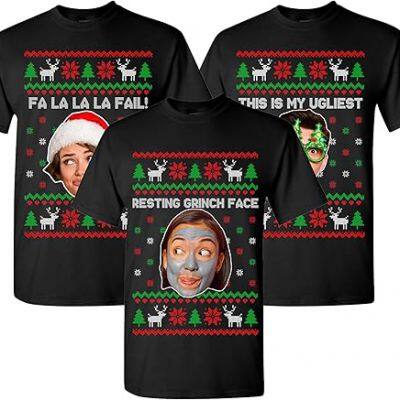 Personalized Holiday Apparel. Create your own custom Christmas tee or sweatshirt by adding your photo, text, or monogram. Perfect for creating unique outfits for family gatherings, office parties, and festive celebrations.