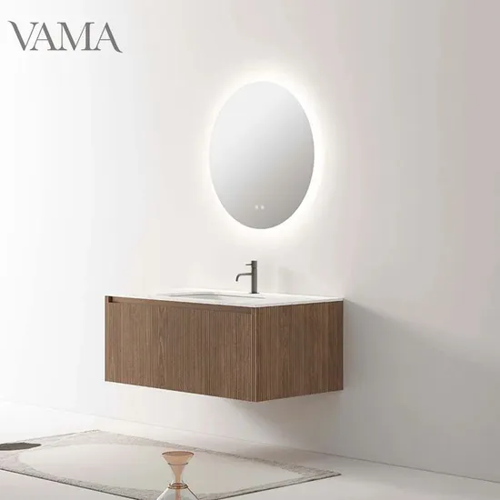 VAMA wall-mounted oak wood washroom unit vanity with clean white porcelain sink