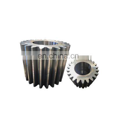 Product DescriptionOur company can supply precision gears, shafts and flanges, and according to different working conditions, we can do normalizing, quenching and tempering, carburizing and quenching and other tooth surface heat treatment processes.A gear shaft is a mechanical part that supports rotating parts and rotates with them to transmit motion, torque, or bendingmoment. It is generally in the shape of metal rods, and each segment can have different diameters. The rotating parts of the machine are mounted on the shaft.Equipment processing capacity:The company has high-precision gear rolling, inserting and grinding machine tools, with CNC lathe, milling machine, internal and external grinder, and surface grinder as the basis, which can process spline shaft, spur gear shaft, helical gear shaft and other shaft products. The production capacity:Module: 8-120Gear Grinding: Max module 25Diameter of Gear Wheel : Max 13000 mmDiameter of Spiral Gear : Max 2200 mmLength of Gear Shaft : Max 5000mmMaterial selection: 40CrMo, 42CrMo, 20GrMnTi carburizing and quenching, etc. The hardness of the shaft can reach HRC60, and non-standard customized services can also be provided. Overall quenching and tempering: the roughness of the shaft is less than or equal to Ra0.8. The surface treatment can be conducted by blackening, zinc plating, chromium plating, nickel plating, hard anodizing and other processes.Shaft category: smooth shaft, spline shaft, spur gear shaft, helical gear shaft, etc. The shaft can be processed according to the drawing, with a minimum of 1 piece.1.Q: Are you trading company or manufacturer ?A: We are professional slewing bearing manufacturer with 20 years' experience.2.Q: How long is your delivery time?A: Generally it is 4-5 days if the goods are in stock. or it is 45 days if the goods are not instock, Also it is according to quantity.3.Q: Do you provide samples ? is it free or extra ?A: Yes, we could offer the sample, it is extra.4.Q: What is your terms of payment ?A: Payment<=1000USD, 100% in advance. Payment>=1000USD, 30% T/T in advance, balance before shipment.5.Q: Can you provide special customization according to the working conditions?A: Sure, we can design and produce the slewing bearings for different working conditions.6.Q: How about your guarantee? A: We provide lifelong after-sales technical service. More ProductsLarge GearGear shaftBrand Slewing BearingContact Us