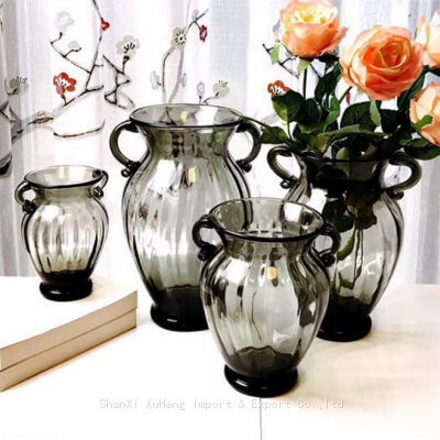 Wholesale Creative Design Colorful Modern Tabletop Decorative Flower Glass Vase With Two Ears