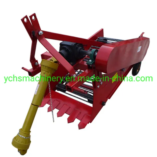 4U series of garlic harvester is mounted with the tractor of 12-60hp with back power and side power output shaft.The working principle of this potato digger is that the digging shovel digs up the soil and crops through the impetus of the tractor. And the digging shovel make crop and soil separate though vibration sieve, the soil first drip down from the clearance of vibration sieve, finally the crop crashed down on to the road from the back.