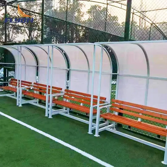Product Introduction The data of 6 seats football bench shelter Size:3000*800*2000mm The seat structure is made of galvanized steel tube while the shelter is made of blue PC solid sheet, and the sheet color can be customized. And the structure is portable with the wheels design. The blow injection seat is made of engineer plastic, durable and long lifespan. Normally, the bench shelter is made in 6 seats, the CC is around 50cm, and the number of the seat can be customized, it can be 2 seats to 10 seats in a bench. The data of 4 seats high end football bench shelter Size:2600*800*2000mm The seat structure is made of galvanized steel tube while the shelter is made of blue PC solid sheet, and the sheet color can be customized. And the structure is portable with the wheels design. The blow injection seat is made of engineer plastic, durable and long lifespan. Normally, the bench shelter is made in 4 seats, the CC is around 65cm, and the number of the seat can be customized, it can be 2 seats to 10 seats in a bench. Roject Reference