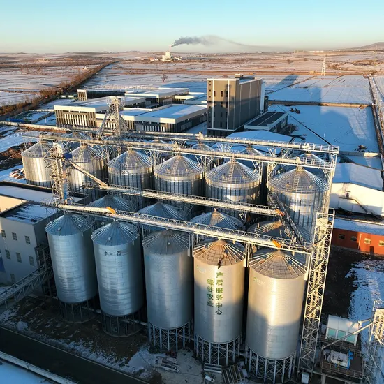 Our grain silo size starts from 200tons to 15000ton, with compatible auxiliary systems of grain receipt, cleaning, drying, lifting, conveyor, grain condition monitoring system, unloading, etc.