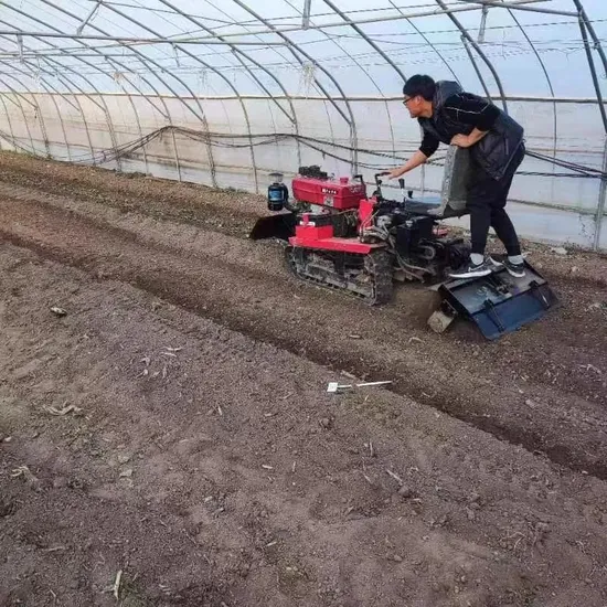 Mini Train Tracked Rotary Tiller With Diesel Engine are provided with rotary ploughing, furrowing, weeding, fertilizing, pesticide application, backfilling, ridge and bulldozing with their attachments quick hitched and thus its utilization up greatly.In addition, they are easy to operate and transport and flexible to work at narrow site. The frame design is reasonable, using thick steel plate, strong and durable, reducing the vibration generated by the engine and prolonging the life of the machine. The engine adopts 25 horsepower diesel engine. 25 horsepower adopts a customized all-gear gearbox. The front gearbox has 3 forward gears, 1 reverse gear, and a working connection box at the rear. It can be used with a large number of agricultural tools such as rotary tillage and ditching. The left and right steering adopts a tie rod mechanism, which is easy to operate, not easy to damage and malfunction.