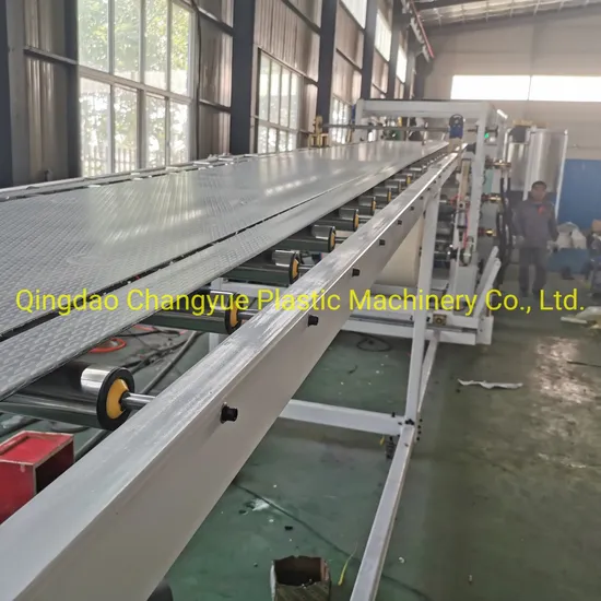 PP PE sheet extruding line consists of single screw extruder,clothes rack type mould,three-roller calendar ,cooling haul rack,sheet shearing machine and other auxiliary machines.It can be used to produce all kinds of soft and hard PP PE board,PP PE sheet and transparent PP PE sheet.It is widely used in the following fields:PP PE wood plastic sheet , PP PE crust foaming sheet and PP PE foaming construction plate,etc